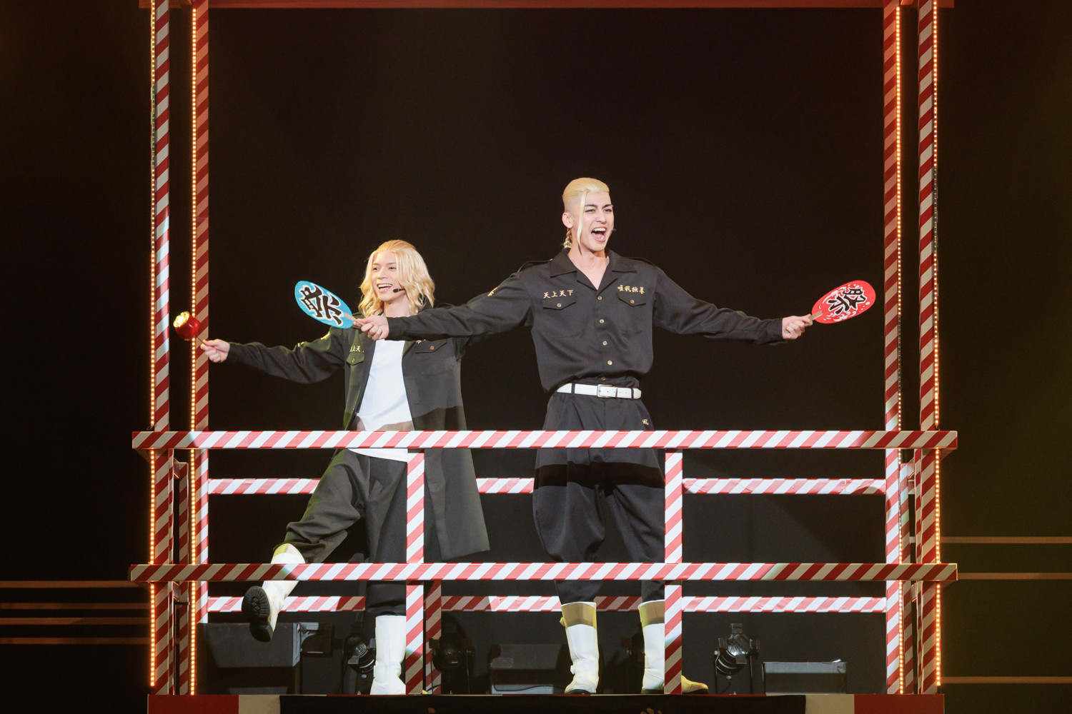 祭りを東京卍會だけに任せていられない、と東京卍會とは違った角度から客席を沸かせたのは、稀咲鉄太(平松來馬)と半間修二(磯野大)。圧巻の歌唱力で場を掌握すると同時に、本編とは違ったお茶目な姿でも楽しませてくれた。