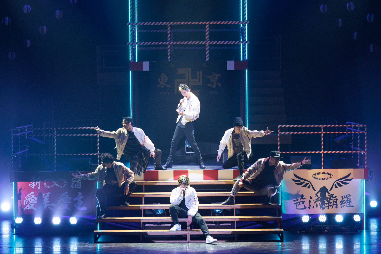 雄々しい太鼓の響きとともに姿を現したのは、東京卍會の壱番隊隊長となった花垣武道(竹中凌平)。武道からの「総長!」の声に現れたマイキーこと佐野万次郎(北村諒)は、櫓のてっぺんに立ち「俺等と一緒にぶち上がるのにひよってるやつ、いる? いねぇよなぁ! いくぞ!」とライブの開幕を宣言。ここから約1時間50分ノンストップのライブがスタートした。